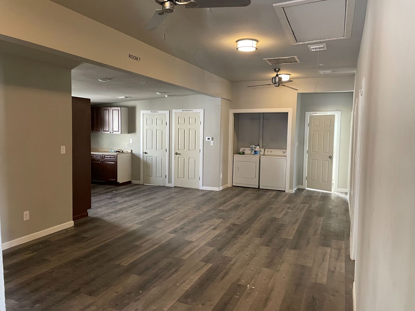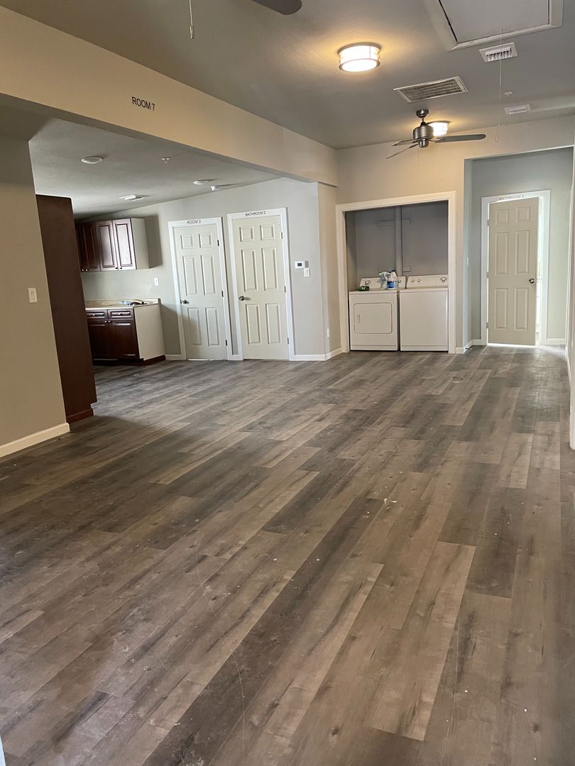 The home features a large layout with multiple living areas, generously sized bedrooms, and ample natural light throughout. With three full bathrooms, the space is well-suited for shared living while maintaining comfort and functionality.