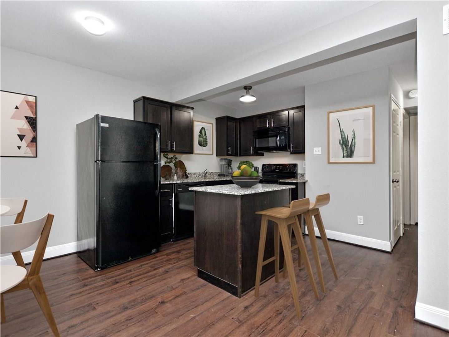 The gated community of Harmon Square Apartments invites you to discover the remodeled one- and two-bedroom apartments available in our pet-friendly community. Rich wood-style flooring welcomes you and sets the contemporary tone. The kitchens in updated models are sure to impress, courtesy of gleaming granite countertops, custom cabinetry, and stainless steel appliances. The open-concept layout may also include a kitchen island. Outside your front door, you can visit the common patio area, the community dog park, or check out the surrounding area, including a Longhorns game at nearby UT Austin.