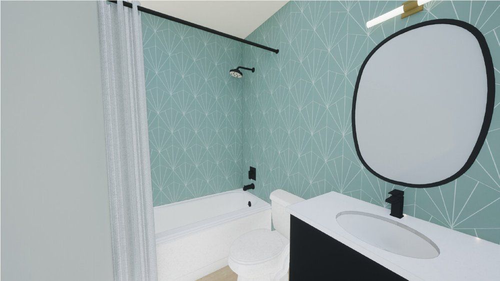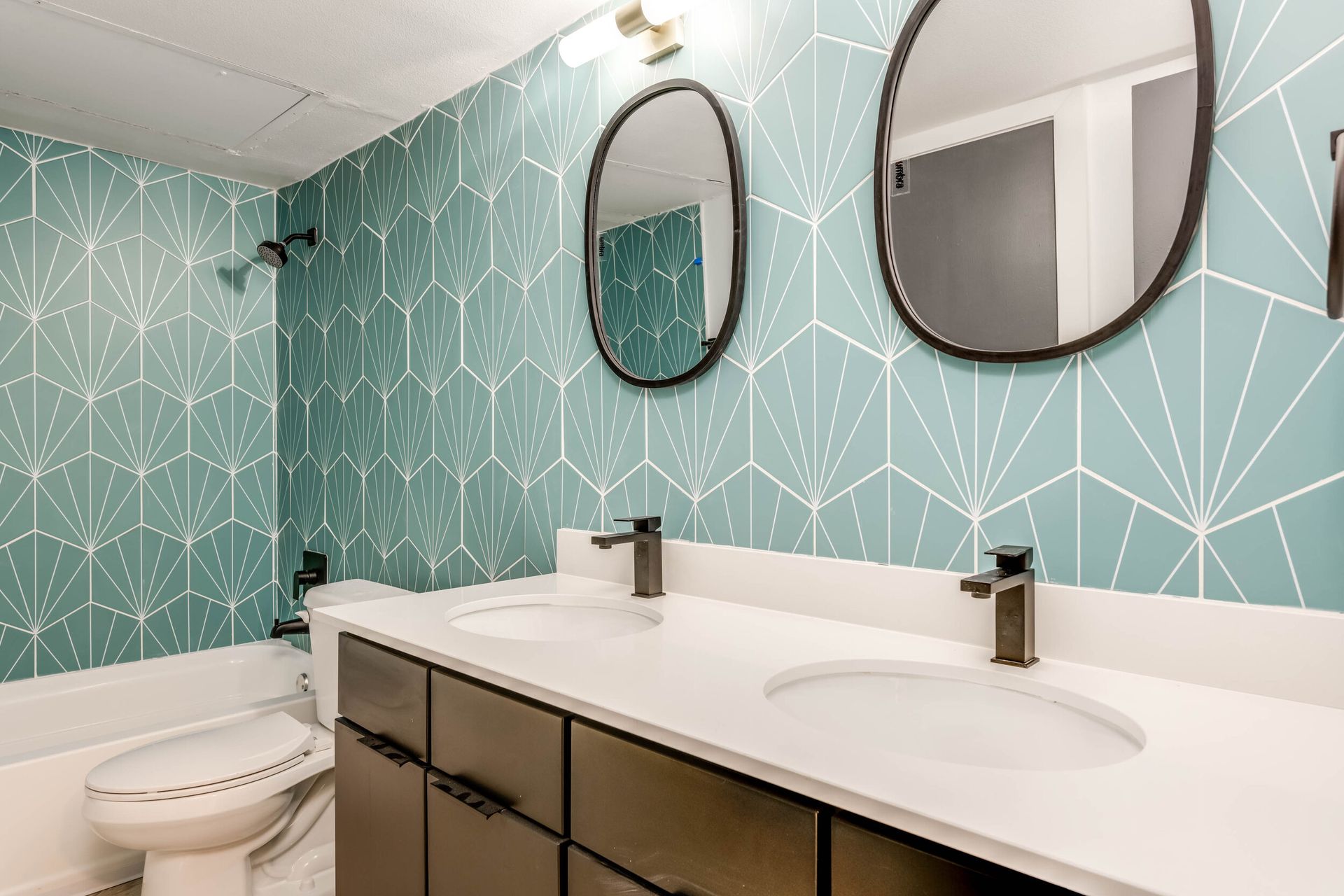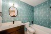 - Playful aqua patterned bathroom tile
